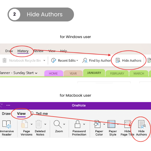 - For Windows users – Click on “History” and then select “Hide Authors” to make the marks disappear.