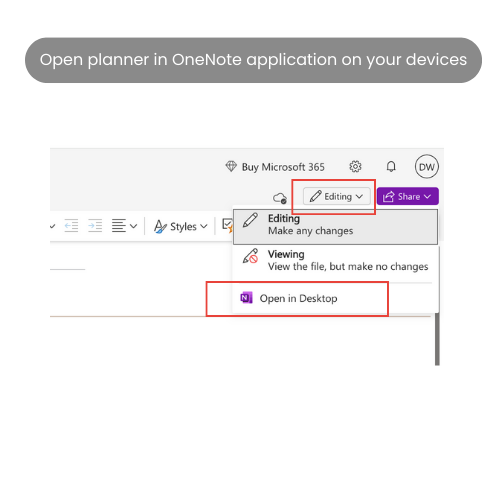 Then click “Viewing” again, and you will find the option to open the planner in desktop.