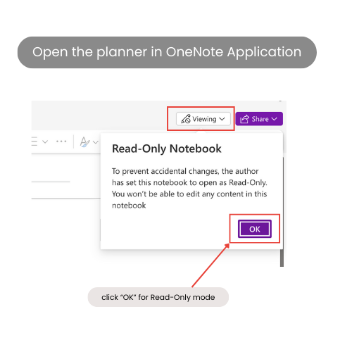 Don’t worry; when you click the “Viewing” button on the online planner, you might see a “Read-Only” pop-up warning. Just click “OK”.