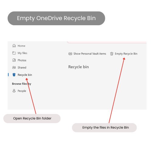 - Manually delete any unnecessary files from your OneDrive storage (including the Recycle Bin)
