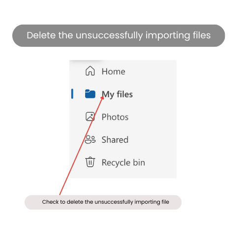 - Log in to your OneDrive account, check the “My Files” folder, and delete the folder that you imported unsuccessfully.